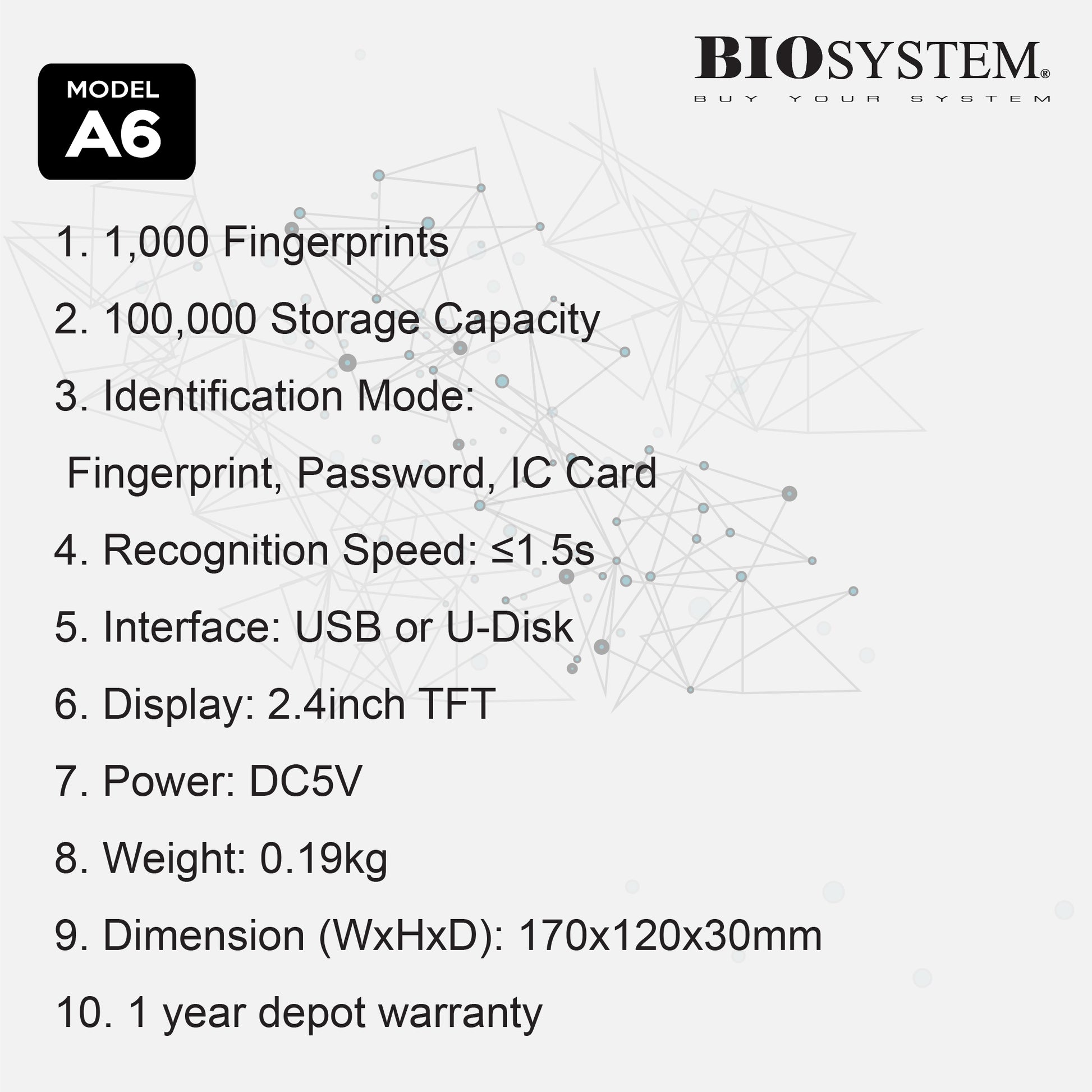 Biosystem Time Attendance System A6